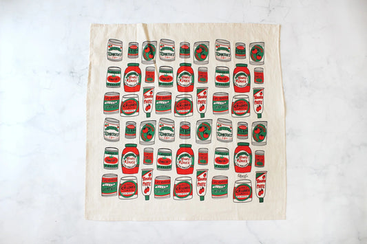 Canned Tomatoes Screen Printed Tea Towel